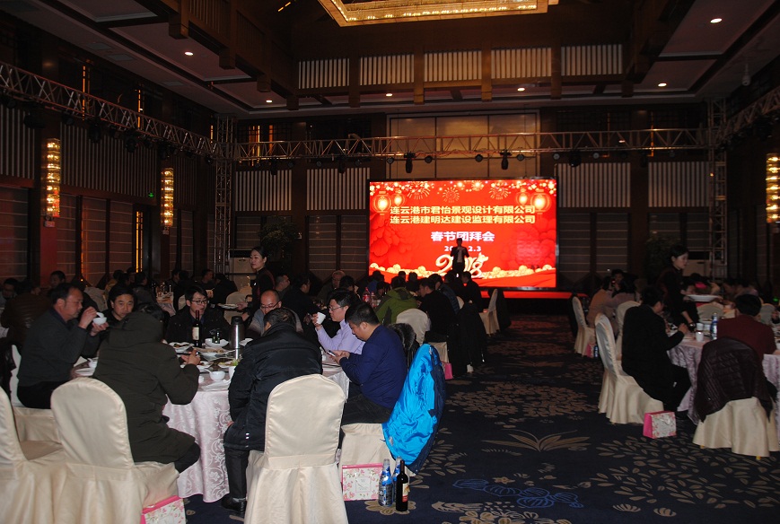 晚七時(shí)新春團(tuán)拜晚宴準(zhǔn)時(shí)在宴會(huì)大廳開始,公司領(lǐng)導(dǎo)與全體員工一同參加了晚宴。員工還自發(fā)排練了一臺(tái)春節(jié)聯(lián)歡晚會(huì),有歌曲、有舞蹈、有朗誦,節(jié)目異彩紛呈,為晚宴增加了歡樂的氣氛。