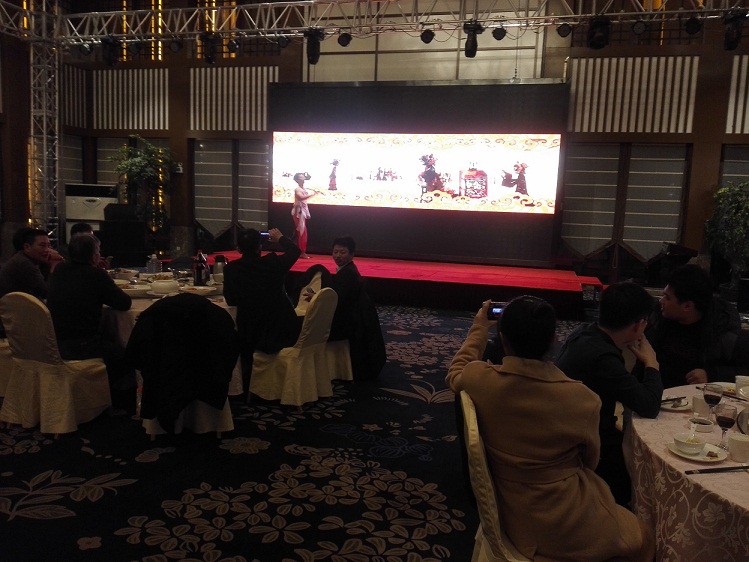 晚宴開始,主持人上臺(tái)主持節(jié)目