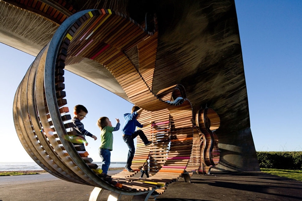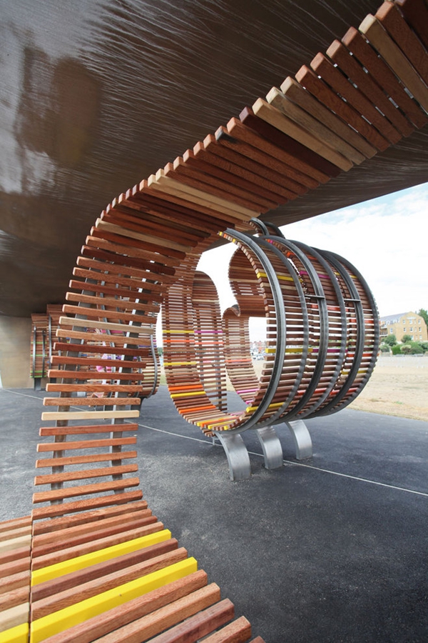這是由Studio Weave設(shè)計(jì)的The longest bench,位于Littlehampton海濱,于2010年7月30完工。沿著蜿蜒的軌道,利用100%回收的熱帶硬木板,制造出這個(gè)富有魅力的旋轉(zhuǎn)環(huán)繞的長(zhǎng)椅。