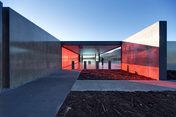 時(shí)的庇護(hù)。第二階段也在今年完成,里面有新建的第三個展示館,整個展示館由混凝土和紅色玻璃組
